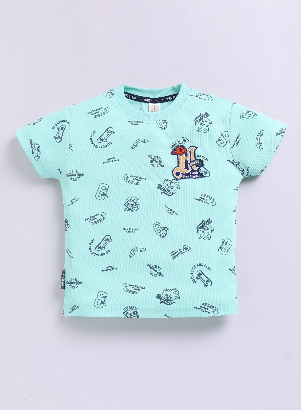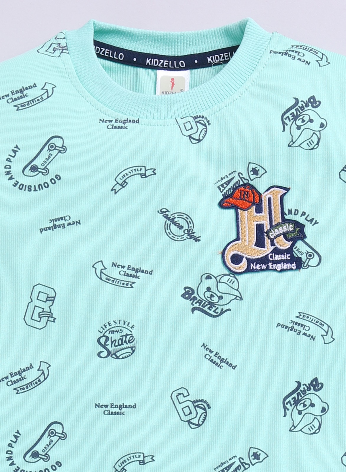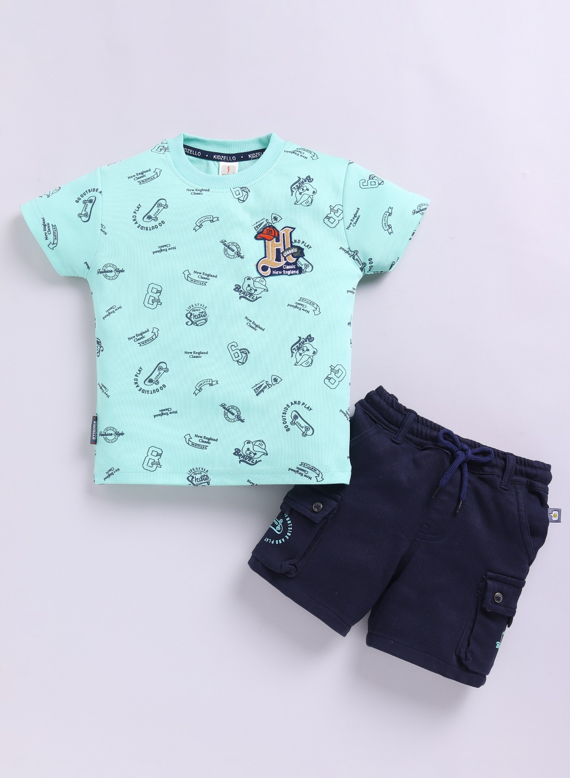 KF 2490 GREEN ALL OVER PRINT TSHIRT WITH COTTON CARGO PANT