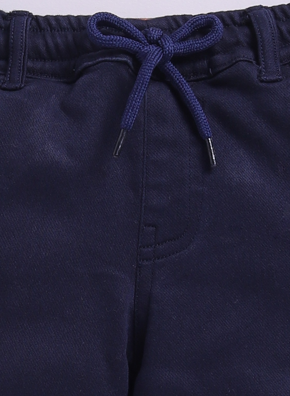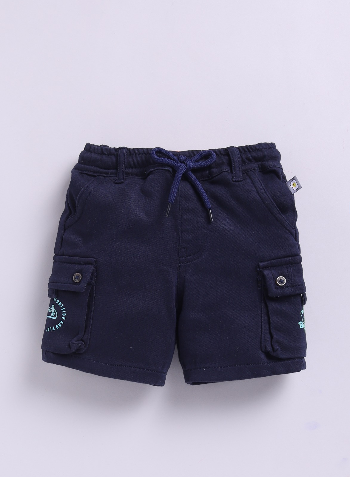Green and Navy Blue solid Shorts ,has a slip-on closure