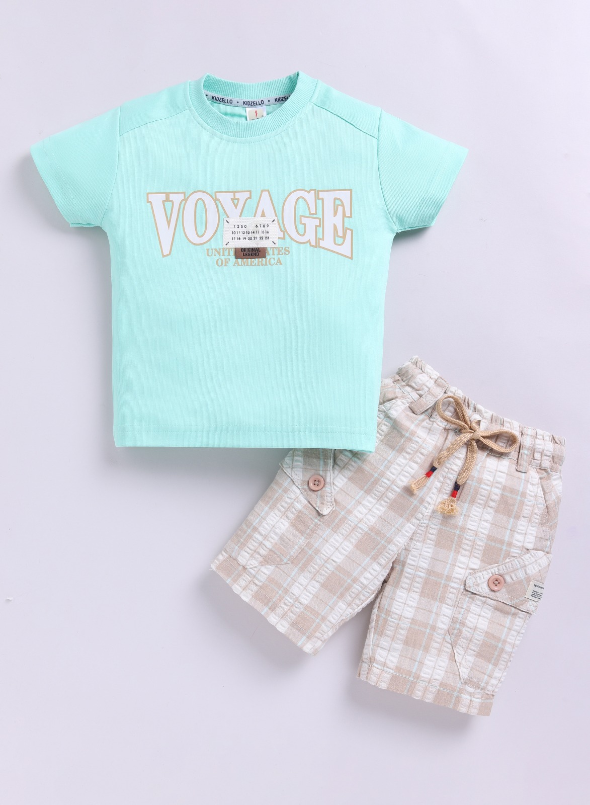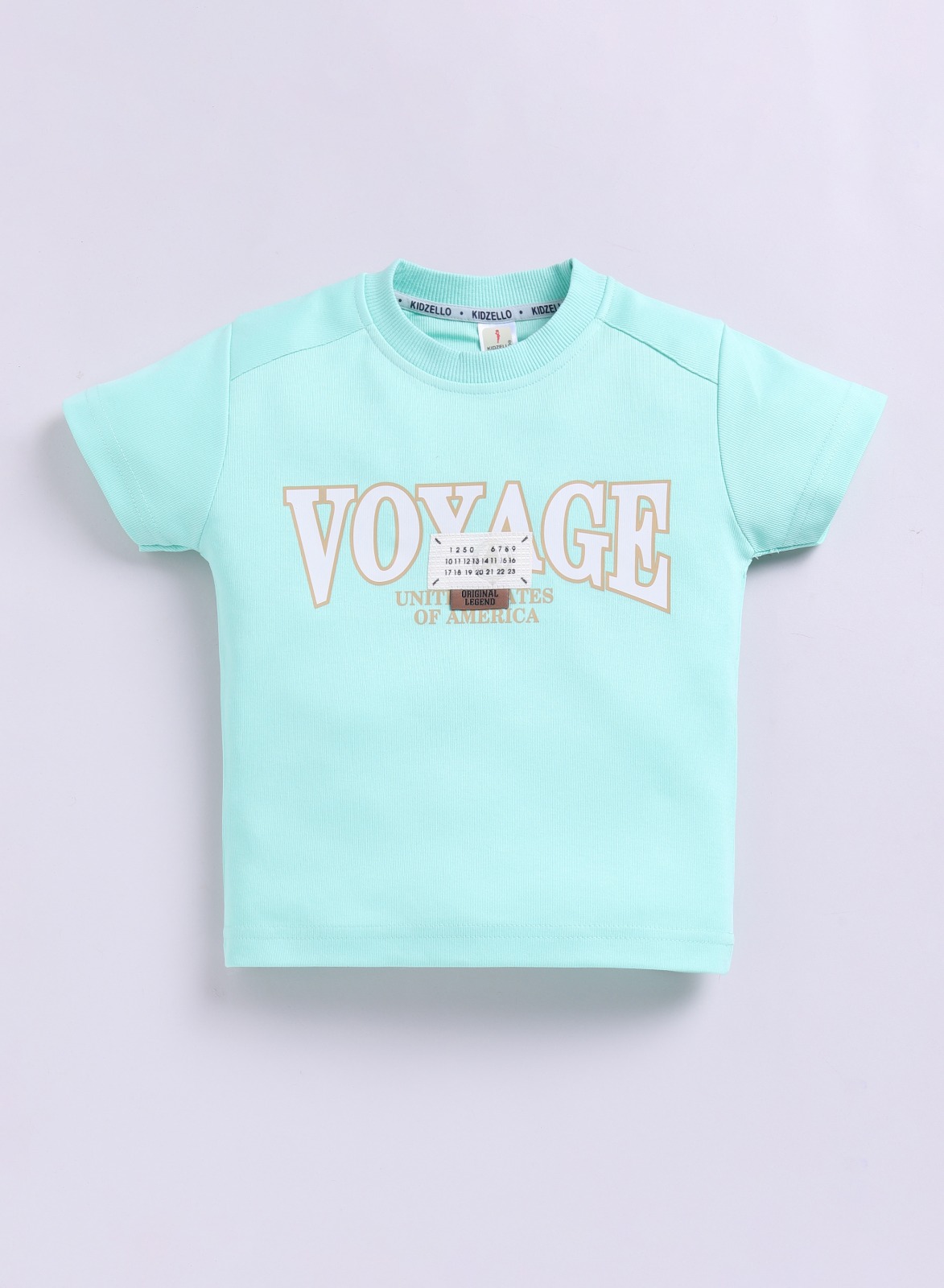 Green Front & Back Printed T-shirt , has round neck, short sleeves