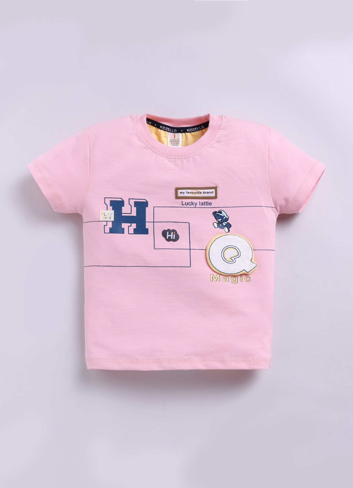 Pink and Blue solid T-shirt ,has round neck, short sleeves