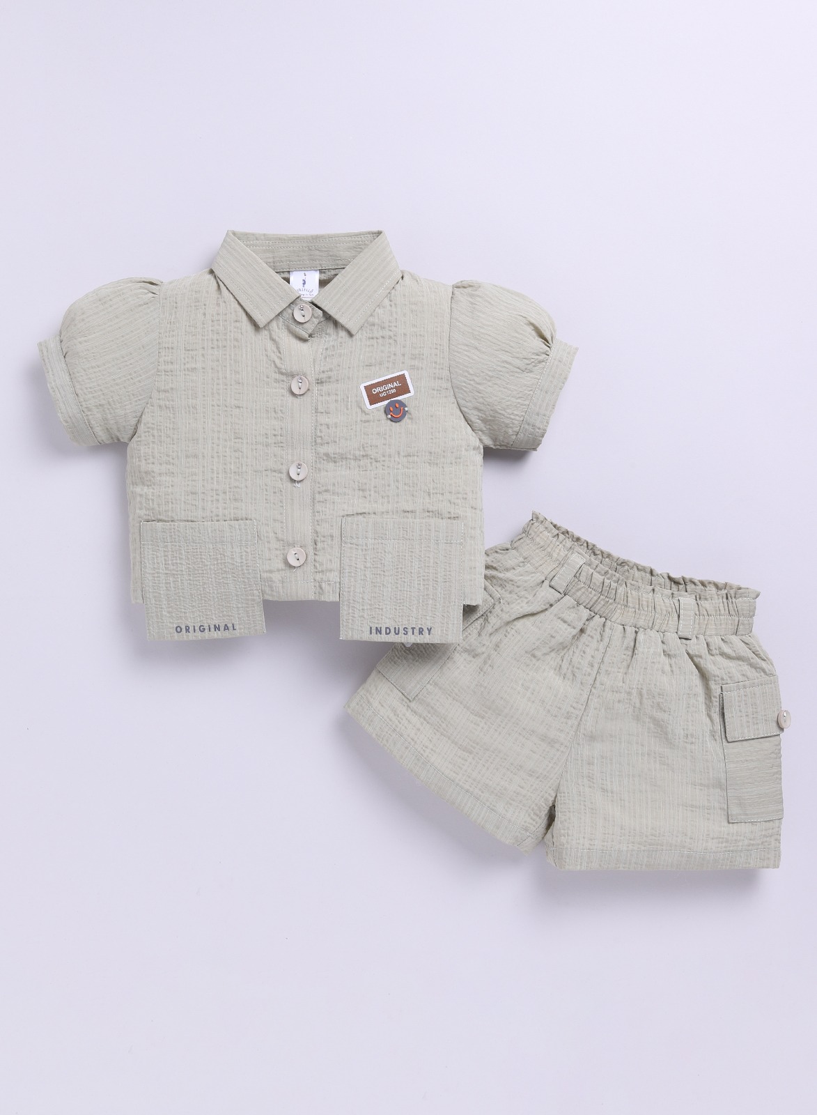 This clothing set consists of Tea Green Top with pockets and short sleeves and Tea Green Shorts for girls